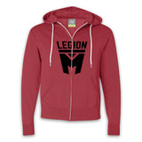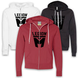 Show off your Legion M pride and look good doing it! These brand new zip-up hoodies are made with 100% cotton, standard sizing, and super comfy with front pockets on both sides. Available in black, red, & white colors.