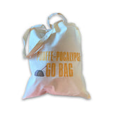 Be prepared for the Pouffe-pocalypse! Get your canvas tote Go Bag in hand and ready to stuff when it's time for escaping. Bag measures approximately 13" x 10". Essentials are not included inside.