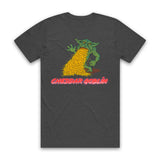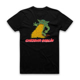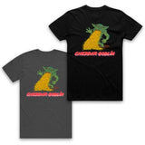 Inspired by one of the most metal scenes in film, fan artist Zack Wallenfang created this fantastic piece featuring the Cheddar Goblin in his classic form of throwing up macaroni and cheese. Inspired by the classic scene from the cult classic film MANDY when Red Miller watches the Cheddar Goblin Macaroni & Cheese commercial, foreshadowing his immanent revenge. Art was used with permission from artist Zack Wallenfang. Available in black or charcoal grey colorways, premium 100% combed ring-spun cotton, unisex crew neck style t-shirt. This fabric is comfortable and lightweight.