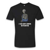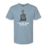 I Do My Own Stunts graphic design by Ian Brown. Premium 100% combed ring-spun cotton, unisex crewneck style t-shirt. Your choice of black or stonewash denim body color. This fabric is comfortable and lightweight.