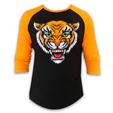 Officially licensed MANDY Tiger Shirt, approved and signed off by director Panos Cosmatos himself based on the actual film costume. Men’s style is made from 100% pre-shrunk cotton with a solid black body and orange 3/4 sleeve. Silk screen printed with the authentic screen accurate tiger artwork design. The 5th year anniversary special edition features glow in the dark teeth.
